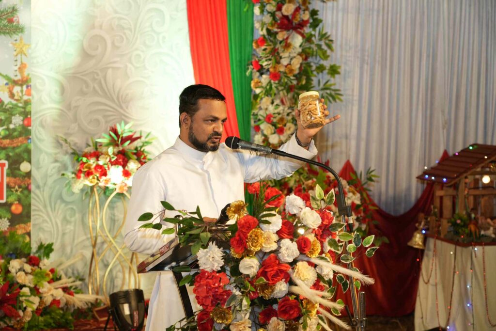 The evening began on a contemplative note with melodious Christmas carols rendered by the choir from Kulur Church, followed by a solemn prayer service led by Rev. Sandeep Theophil, Registrar of Karnataka Theological College, Balmata.
