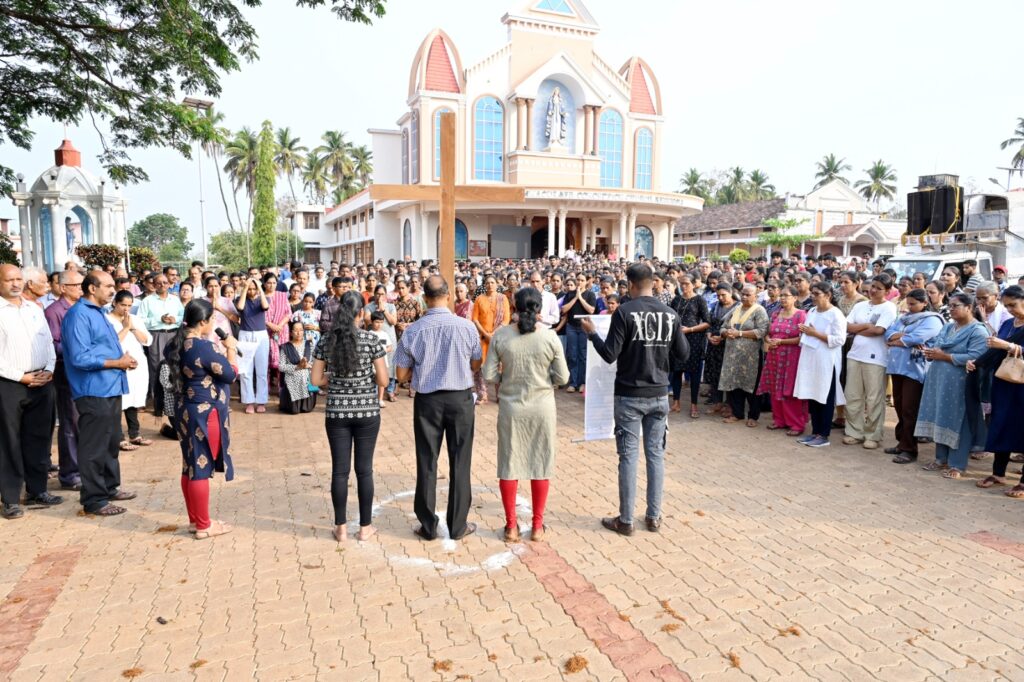 MANGALURU, APRIL 03: Marking the most sombre day in the Christian calendar, thousands of faithful across the Diocese of Mangalore participate in the Way of the Cross this Good Friday. This year’s observances carry a special significance as the Diocese celebrates the “Year of Children,” placing the younger generation at the heart of the Lenten and Paschal ceremonies.