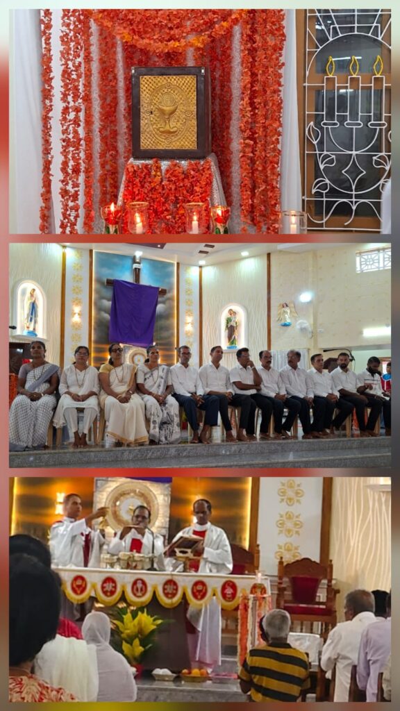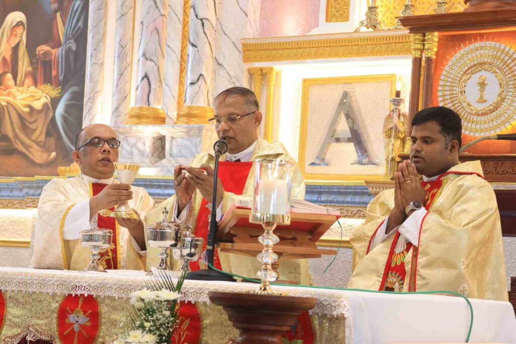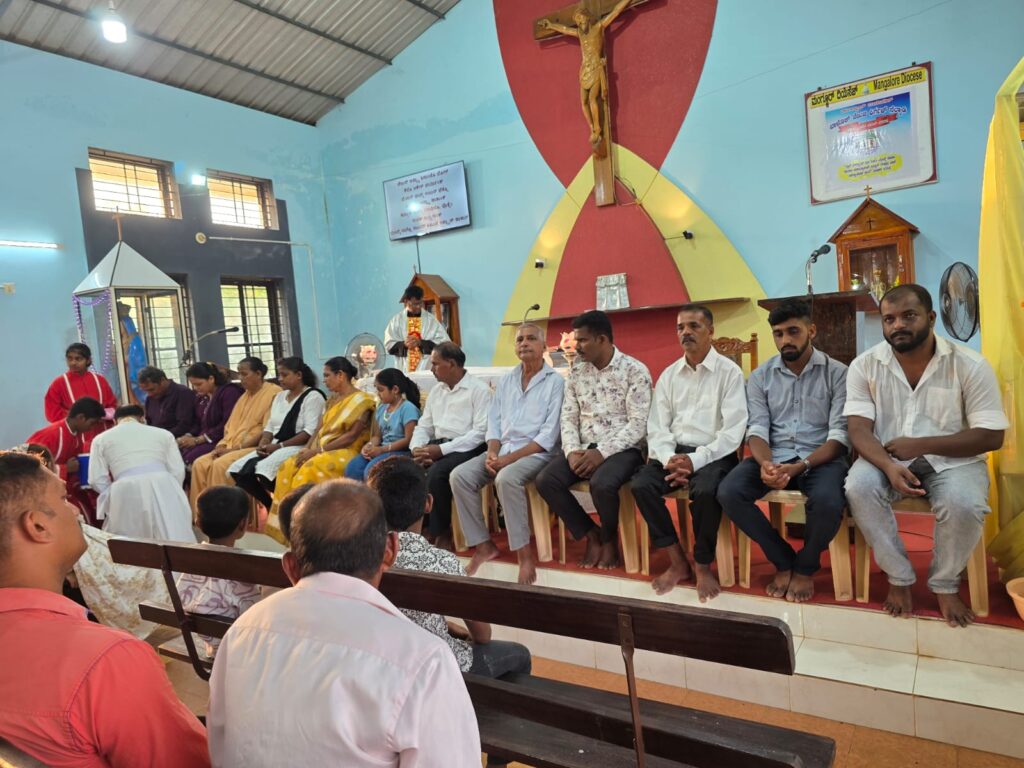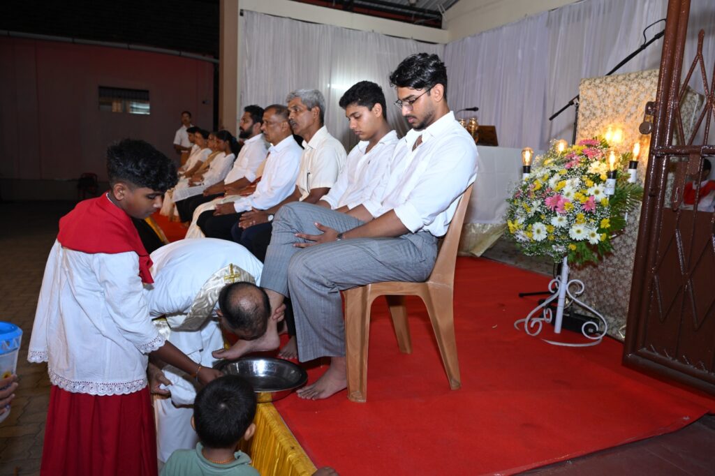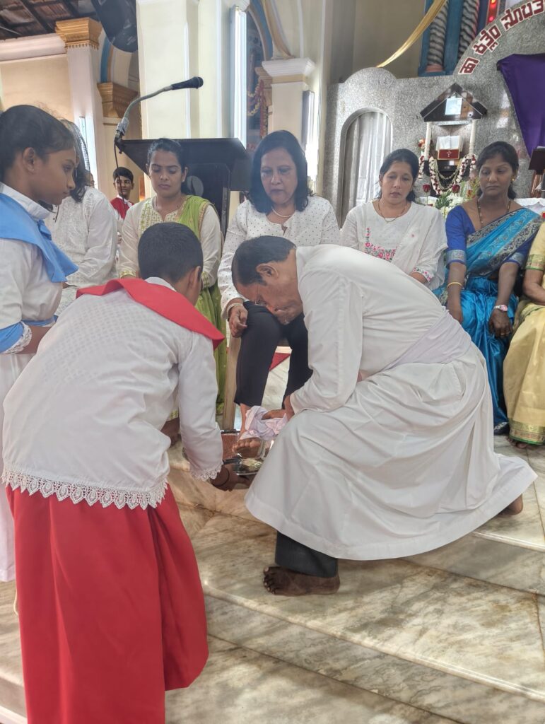 The solemn Mass of the Lord’s Supper, commemorating the institution of the Holy Eucharist and the Priesthood, was concelebrated by Rev. Fr Stany Pinto, Parish Priest of Mukka Church, and Rev. Fr Praveen D’Souza.
