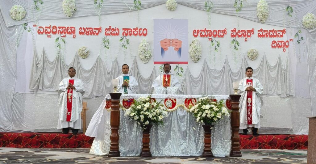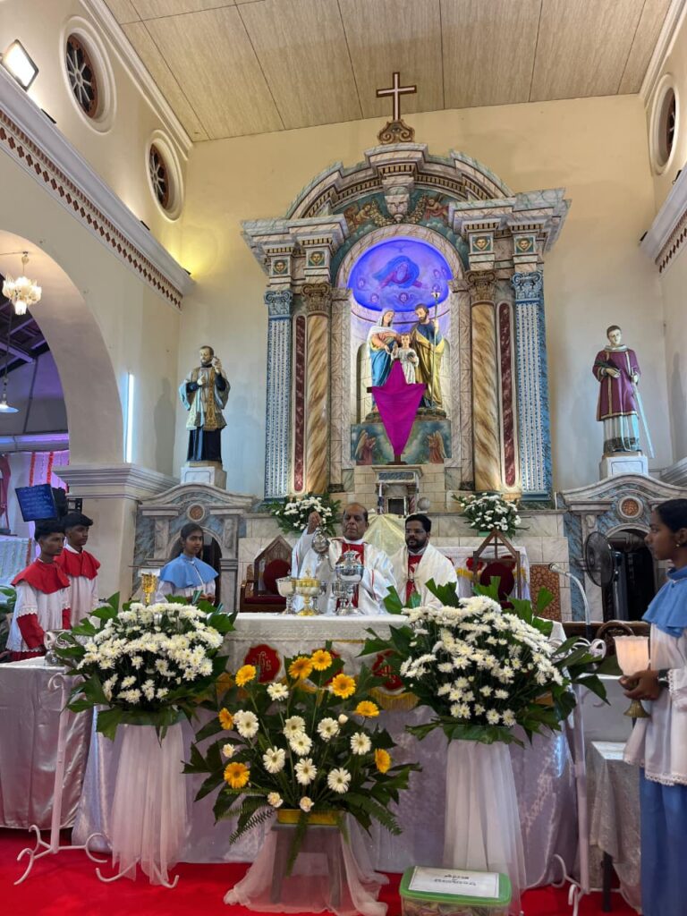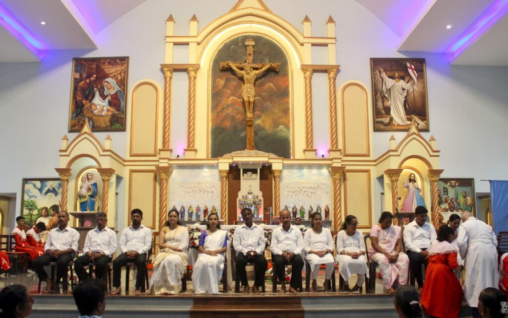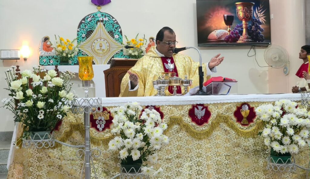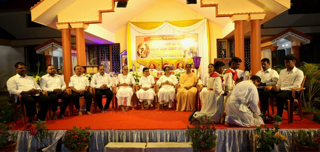 The solemn Mass of the Lord’s Supper, commemorating the institution of the Holy Eucharist and the Priesthood, was concelebrated by Rev. Fr Stany Pinto, Parish Priest of Mukka Church, and Rev. Fr Praveen D’Souza.