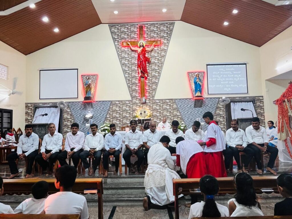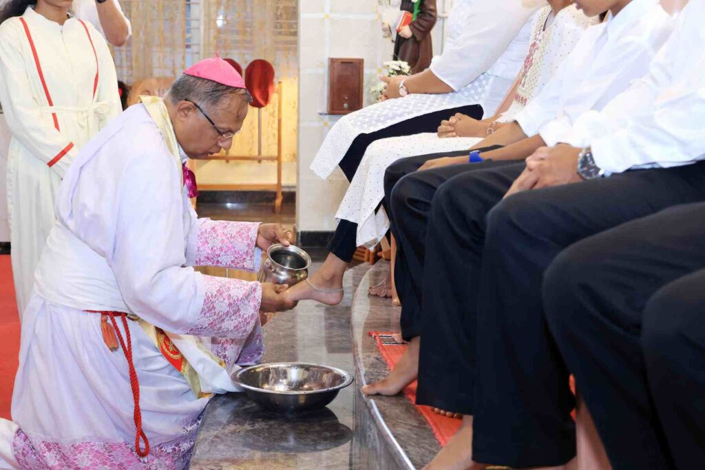 ಬಲಿಪೂಜೆಯ ಸಂದರ್ಭದಲ್ಲಿ ಬಿಷಪ್ ಅವರು 12 ಮಂದಿ ಪ್ರತಿನಿಧಿಗಳ ಪಾದಗಳನ್ನು ತೊಳೆದು ಕ್ರಿಸ್ತನ ಸೇವೆಯ ಮನೋಭಾವವನ್ನು ಸಾರಿದರು.