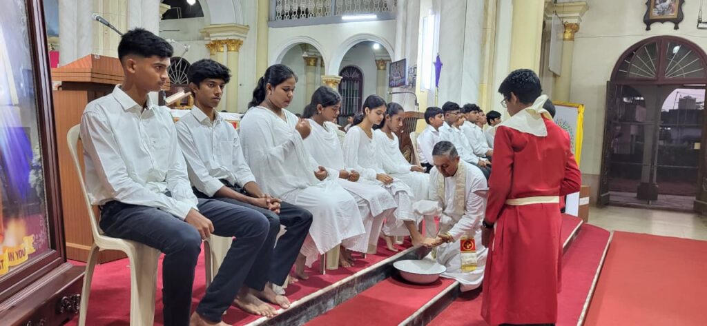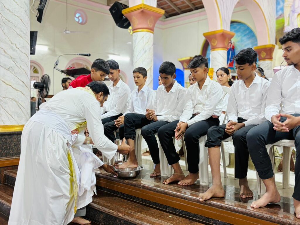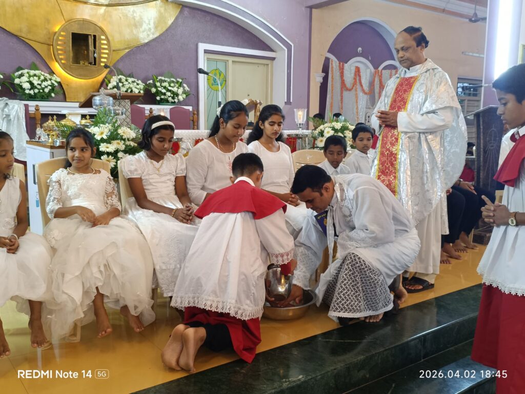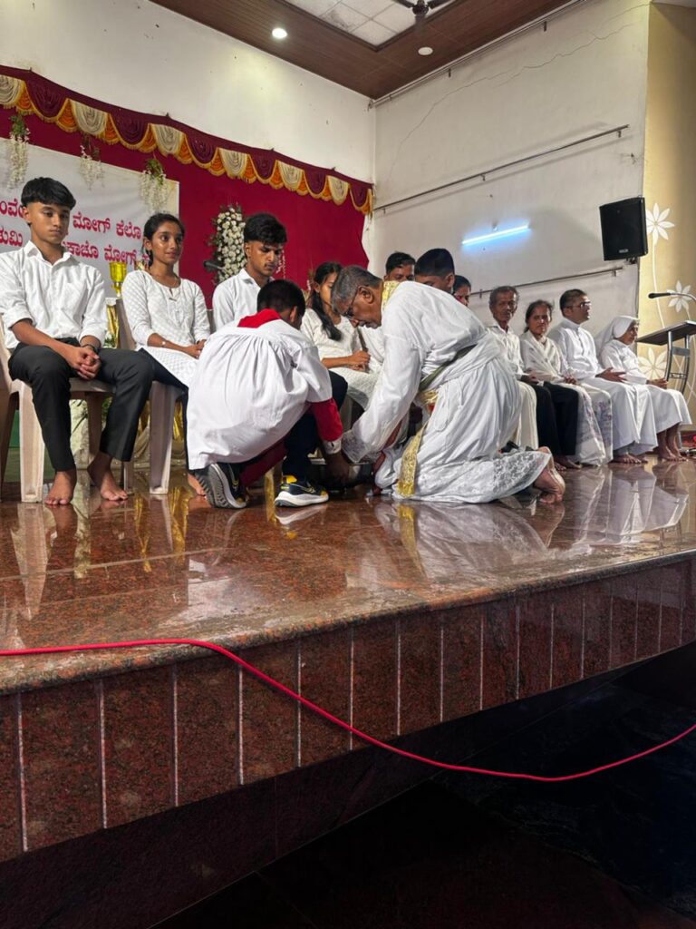 Simultaneously, across the 125 parishes of the Diocese, parish priests performed the washing of the feet with a special emphasis. In a meaningful gesture marking the ‘Year of Children’ currently observed in the Diocese of Mangalore, many priests washed the feet of children, symbolizing the Church’s commitment to nurturing the younger generation in the spirit of Christ’s humility and care.