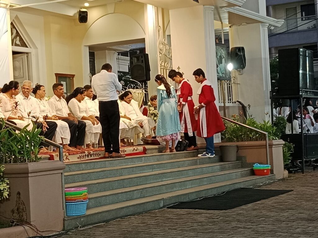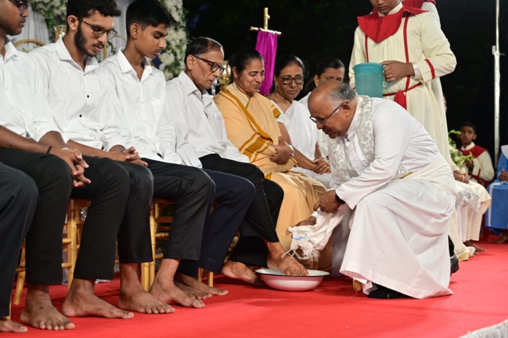 During the ‘Mandatum’ (washing of the feet), Bishop Peter Paul Saldanha washed the feet of twelve parishioners, mirroring the humility of Jesus who washed the feet of His apostles during the Last Supper. This ritual serves as a reminder of the call to humility and mutual service within the Christian community.