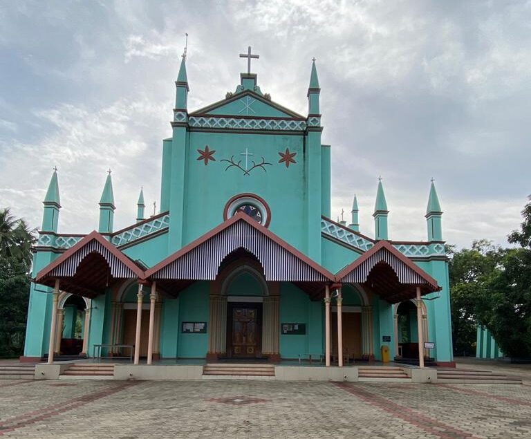 The foundation stone for the present church, designed by Fr A. Diamanti sj, was laid on October 1, 1905 by V. Rev. Frachetti sj, the Vicar General. Fr Cajetan M. Pereira (1904-1907) began the construction of the church and Fr Rosario P.B. Lewis (1908-1919) completed it and it was blessed on February 7, 1909 by Bishop A. Cavadini sj. This church is one of the first in the diocese built in Cruciform and gothic in style.